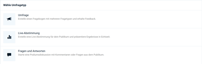 Interaktive Engagement-Funktionen: Live-Umfragen durchführen, Q&A-Fragen mit Abstimmungsmöglichkeit sammeln und Umfragen starten – ohne Plattformwechsel oder zusätzliche App-Downloads für Teilnehmende.