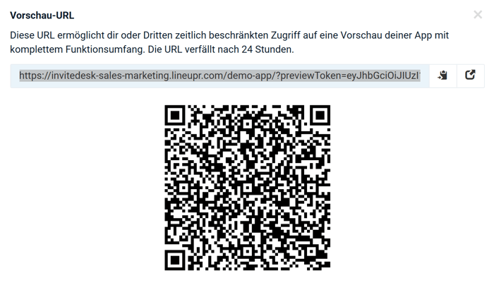 Mit LineUpr genügt es, die App im Dashboard zu veröffentlichen – es wird sofort eine einsatzbereite URL generiert, die auf jedem Smartphone oder Laptop geöffnet werden kann. Zusätzlich besteht die Möglichkeit, über eine Vorschau-URL die App zu testen, ohne sie zu veröffentlichen.