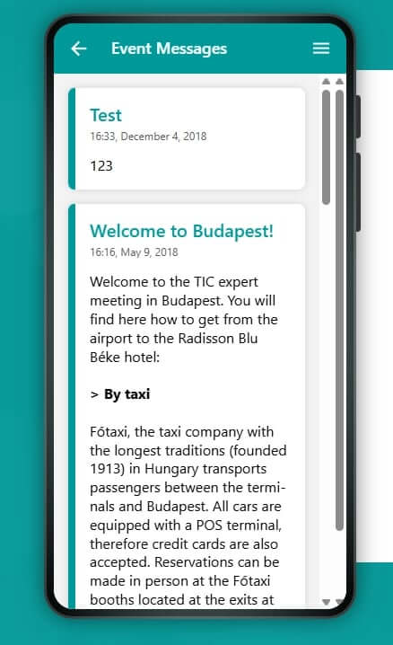 For announcements that don't fit neatly into a session edit — a bus departure update, a catering change, a room capacity note — the in-app messaging tool lets you push a notification directly to every attendee's screen, even when the app isn't actively open in their browser.