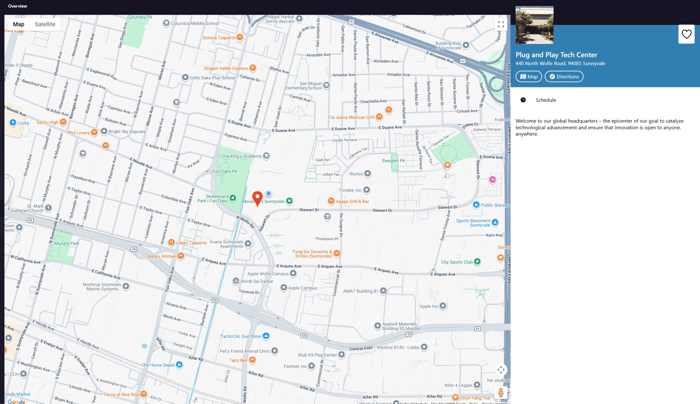 Venue maps — whether a Google Maps embed for the building location or a custom floor plan upload for the room layout — round out the information layer, so nobody is asking at the front desk where the breakout rooms are.